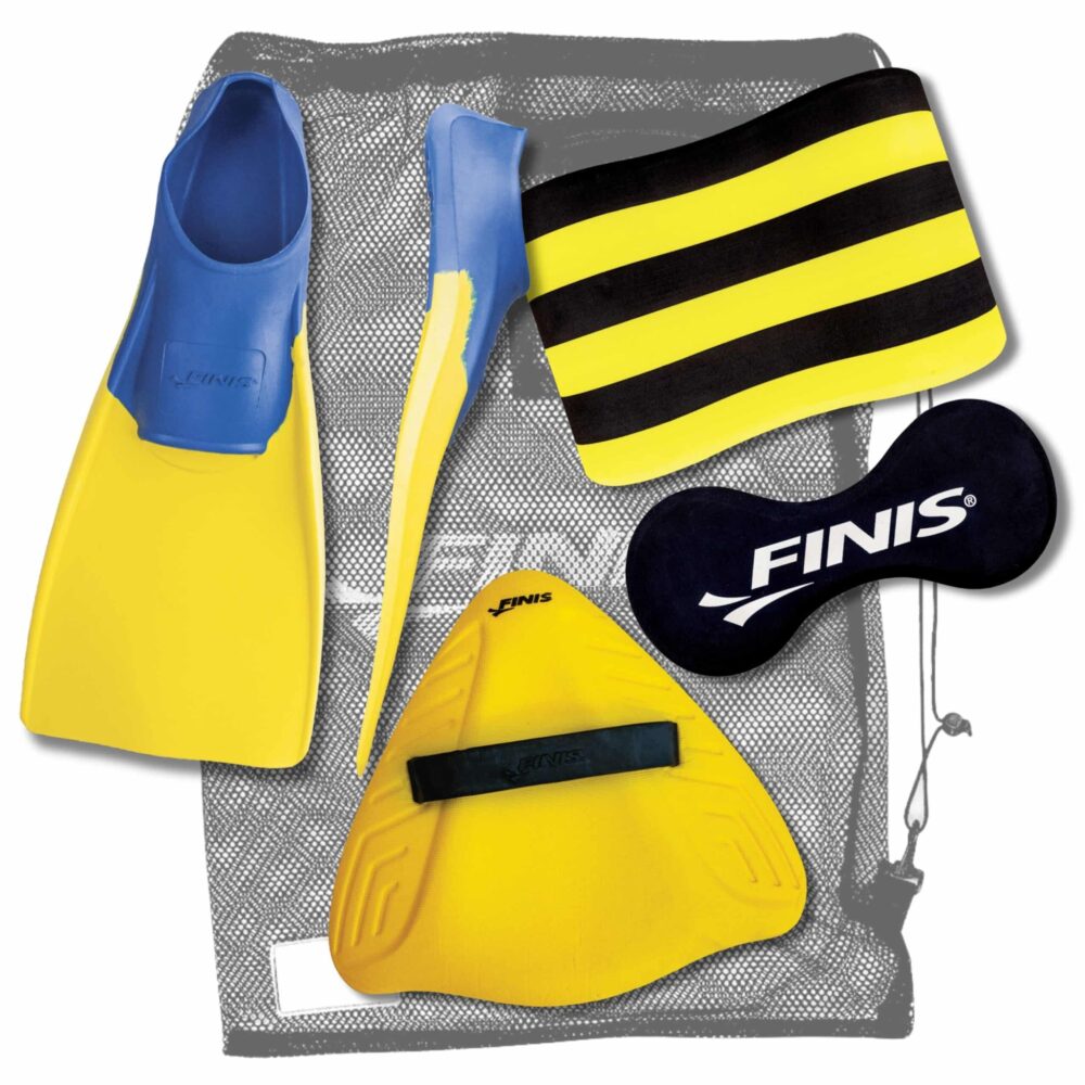 FINIS Starterset Inhalt: Meshbag (div. Farben), Alignment Board, Pullbuoy (Größe wählbar) und Flossen (Größe wählbar aus Long Floating und Gold Zoomers).